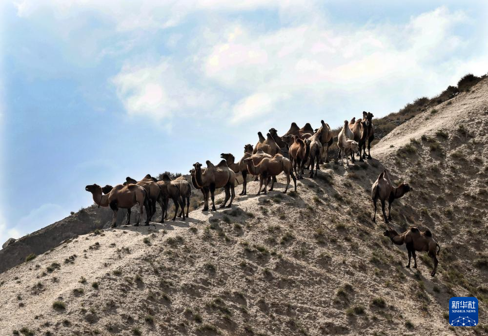 7月29日,一群骆驼在古尔图南山景区悠闲吃草。