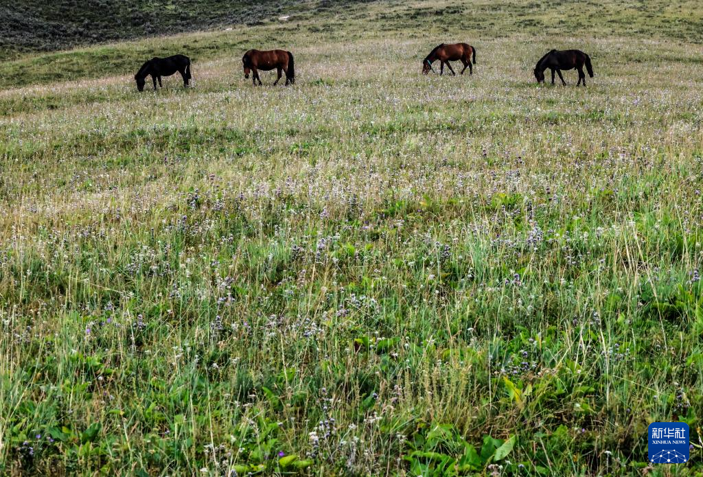 7月29日,马在古尔图南山景区悠闲吃草。