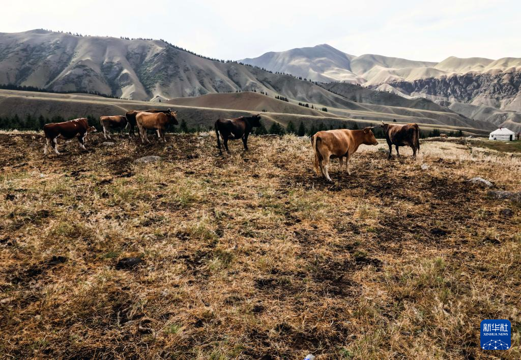 7月29日,牛群在古尔图南山景区悠闲吃草。