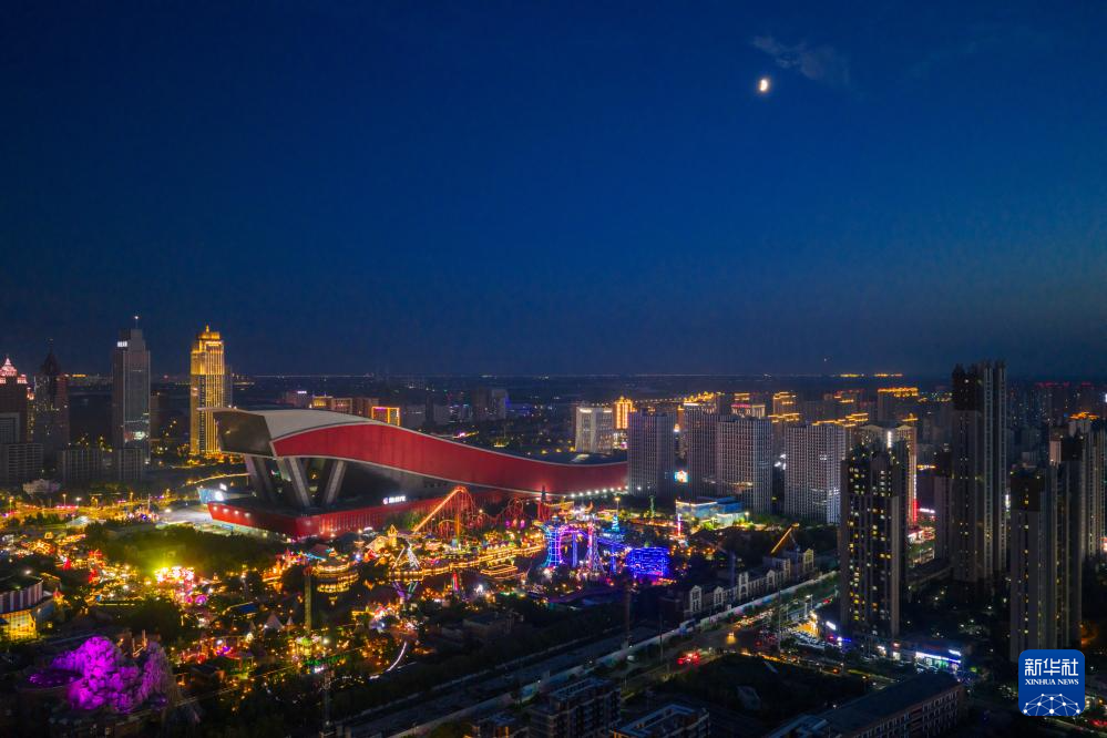 这是8月1日在黑龙江省哈尔滨市松北区拍摄的年度最小上弦月(无人机照片)。