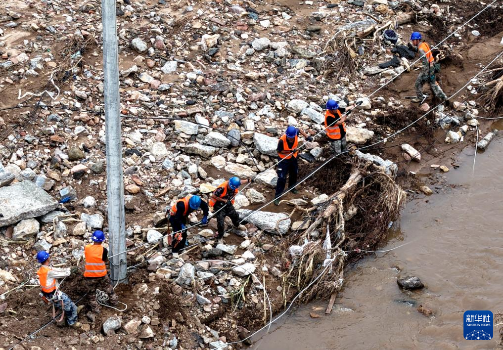 8月2日,国网兴隆县供电公司工作人员在兴隆县六道河镇南台村抢修供电线路。