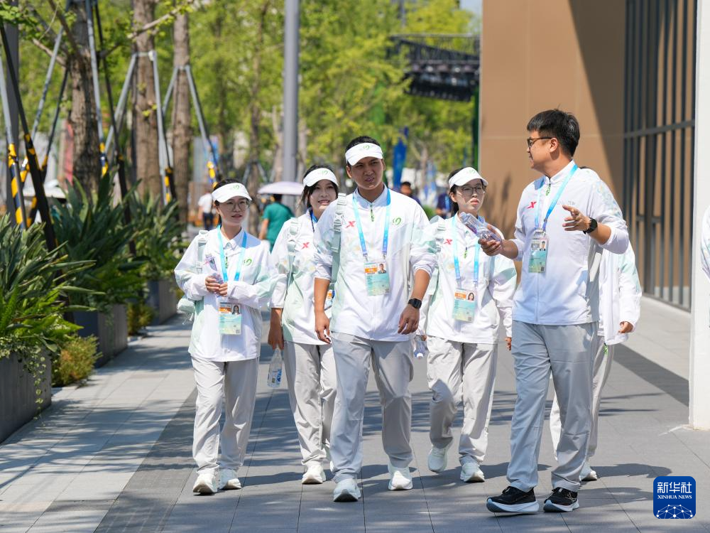 8月3日,志愿者在成都世运会运动员村A区巡村。