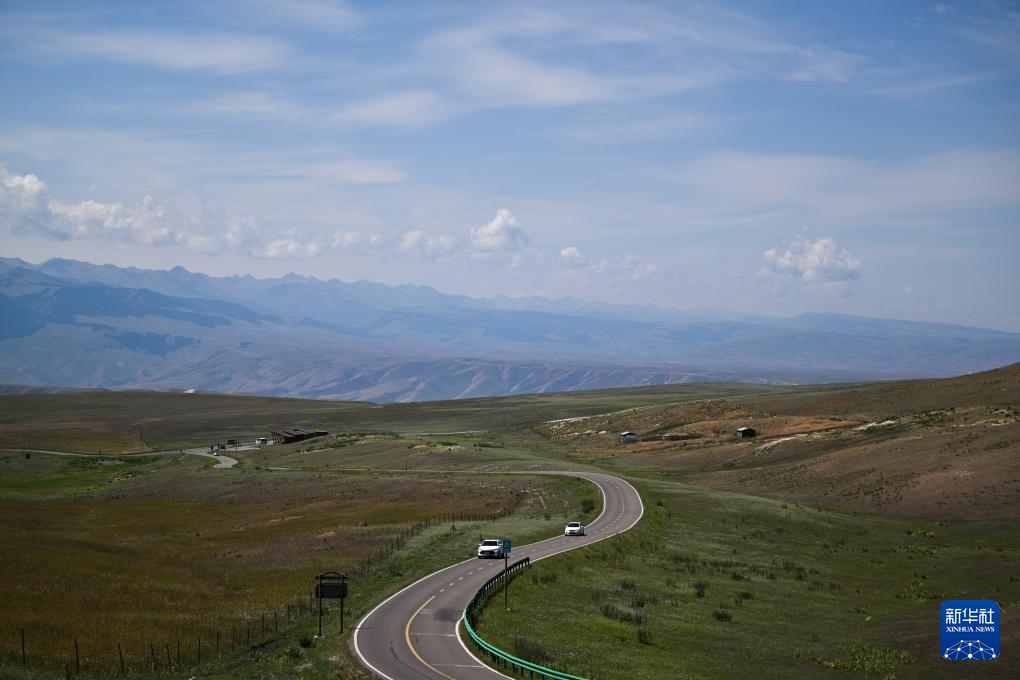 8月1日,车辆行驶在新疆伊犁哈萨克自治州特克斯县喀拉峻草原的道路上。