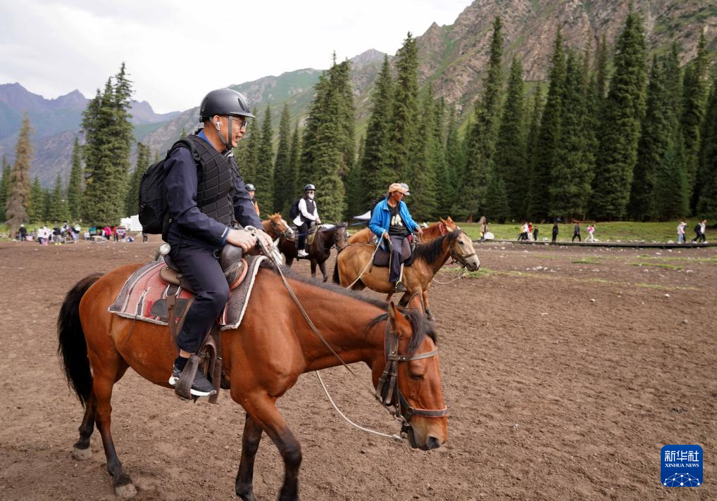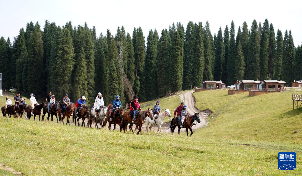 7月30日,游客在新疆伊犁哈萨克自治州昭苏县夏塔景区骑马。
