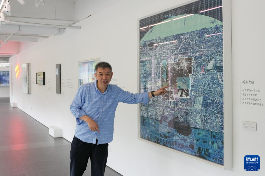 王坚在杭州云栖小镇“2050博悟馆·百草园”介绍展陈内容(7月31日摄)。