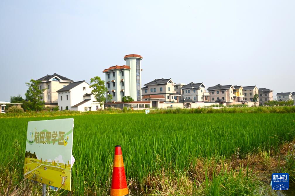 这是8月4日在浙江省杭州市萧山区梅林村拍摄的稻田研学区。