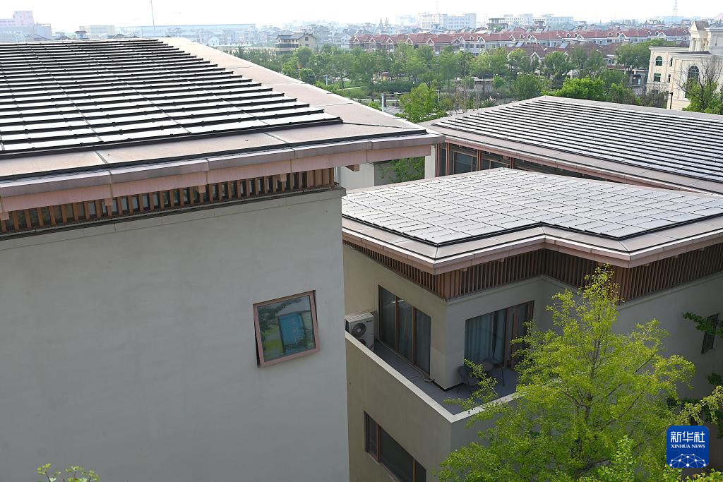 这是8月4日在浙江省杭州市萧山区梅林村拍摄的民居屋顶光伏板。