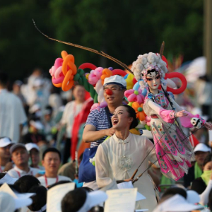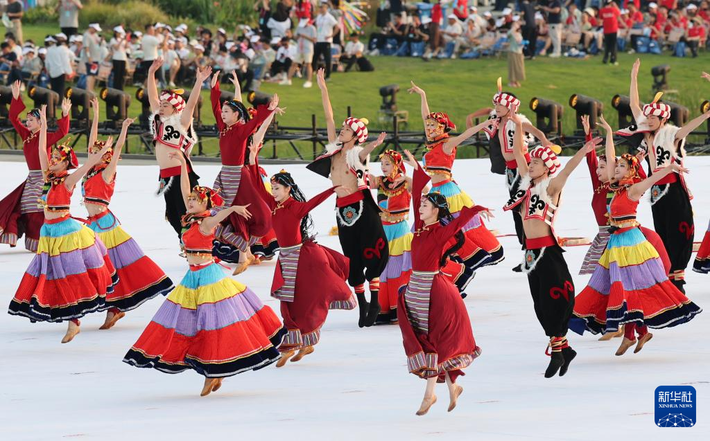 8月7日,演员在开幕式前进行暖场表演。