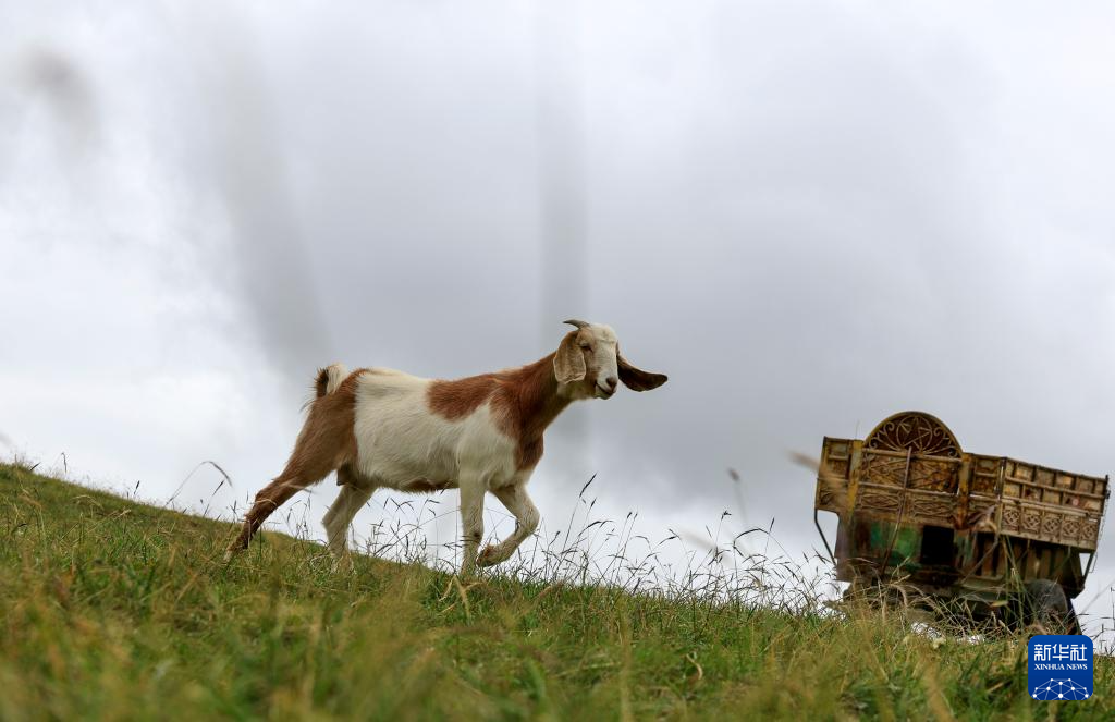 8月6日,一只小羊新疆昆仑山景区“悠闲散步”。