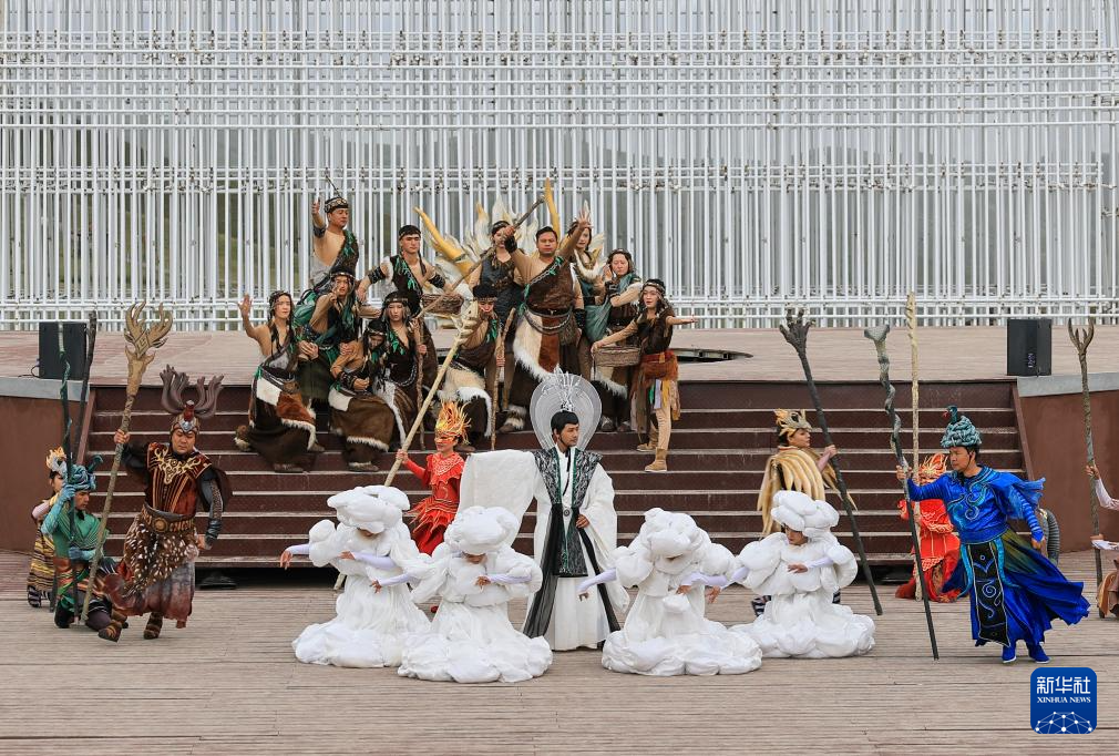 8月6日,新疆昆仑山景区演员表演《源起昆仑》大型实景剧。