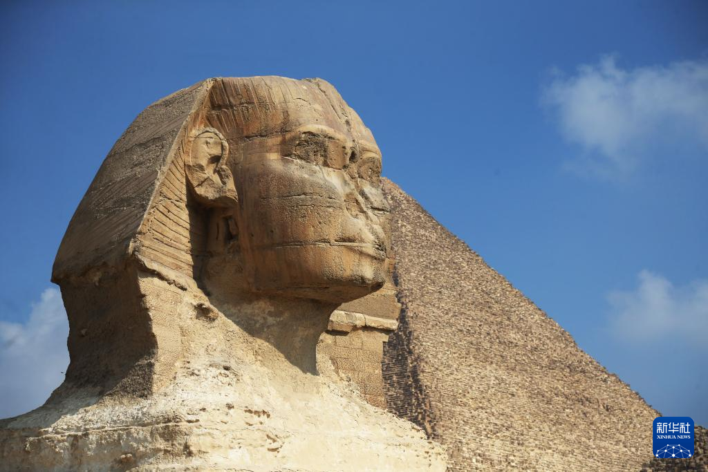这是8月5日在埃及吉萨金字塔景区拍摄的狮身人面像。