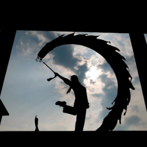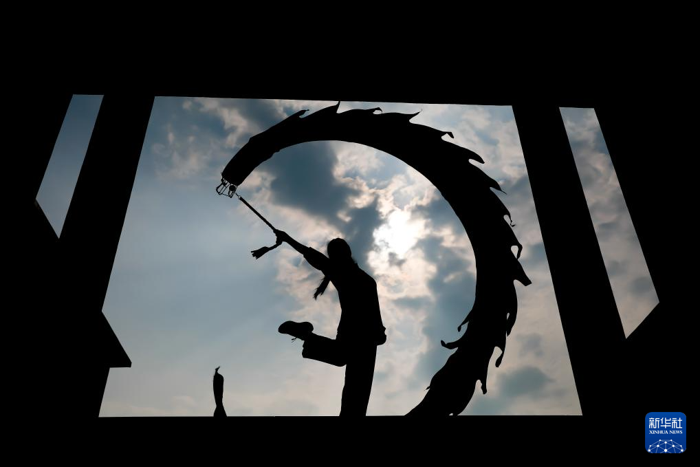 8月8日,市民在河南省武陟县全民健身馆舞龙。