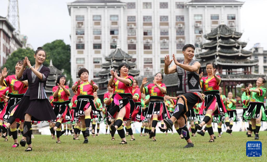 8月8日,市民在湖南省怀化市通道侗族自治县民族广场参加健身活动。