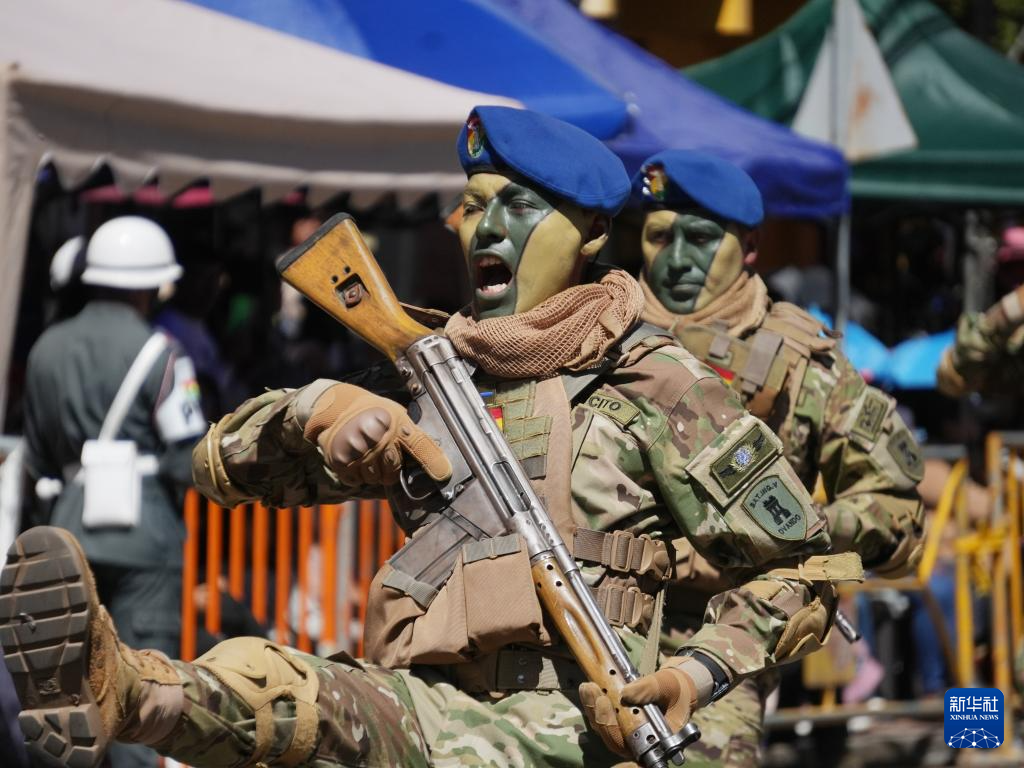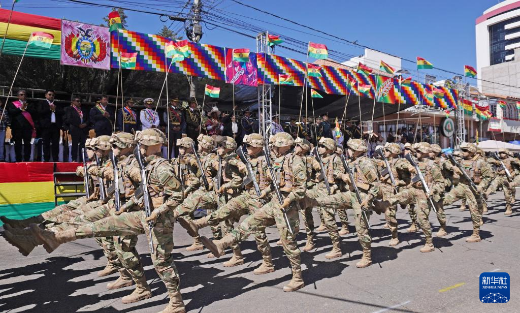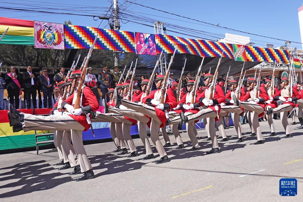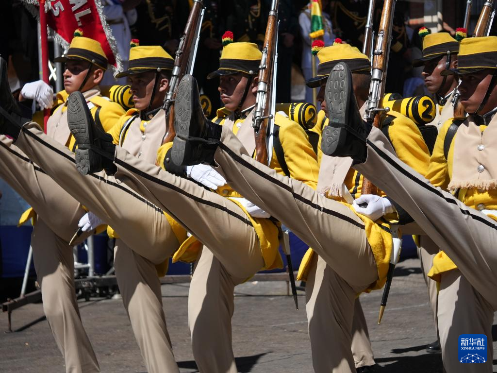 8月7日,在玻利维亚苏克雷,士兵参加阅兵式。