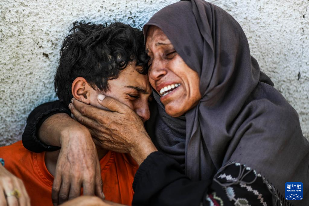 8月6日,巴勒斯坦人在加沙城的希法医院悼念亡者。