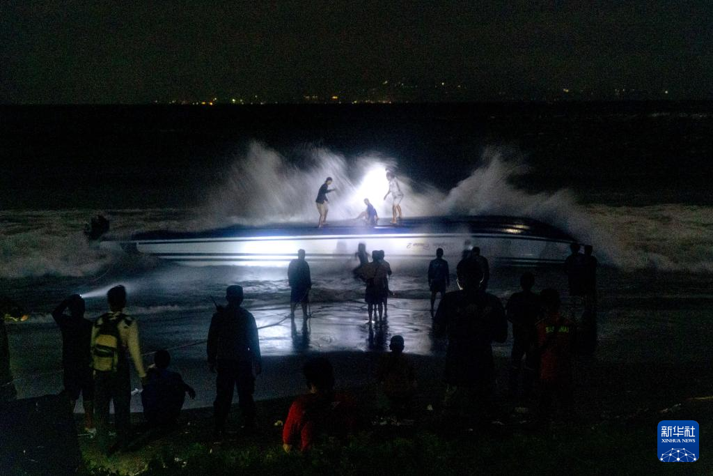 8月5日,在印度尼西亚巴厘岛,工作人员将倾覆快艇拉到岸边。