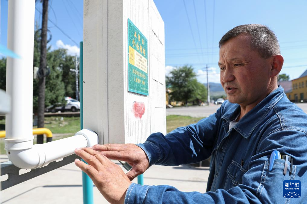 阿曼吐尔·依沙木丁在萨尔阔布乡查看由他发明改良的“乡村防牲畜破坏电表箱”(7月18日摄)。