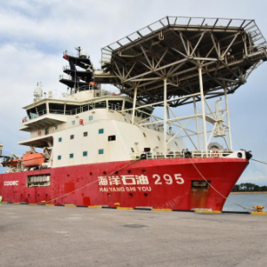 当日,由中国自主设计建造的多功能特种作业船——“海洋石油295”船首次来到文莱参与项目作业。