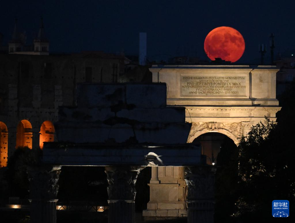 这是8月9日在意大利首都罗马拍摄的月亮。
