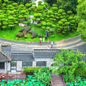 8月10日,游客在江苏省扬州市江都区丁伙镇朴园游玩(无人机照片)。