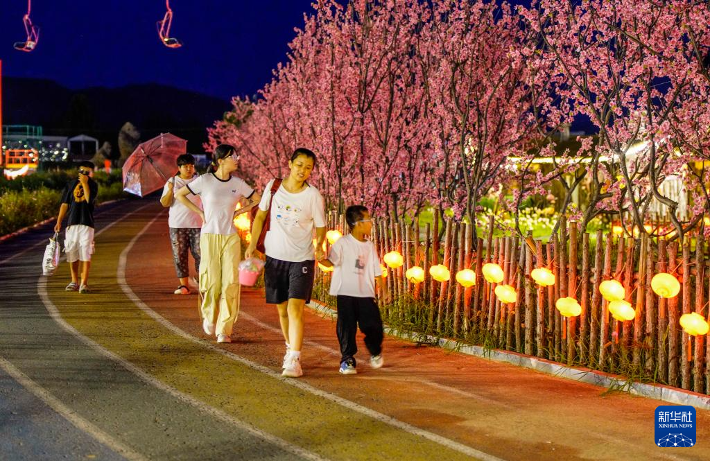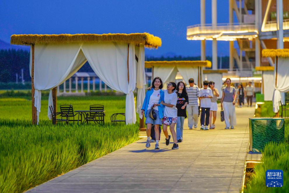 8月10日晚,游客在河北省遵化市一处景区赏景游玩。