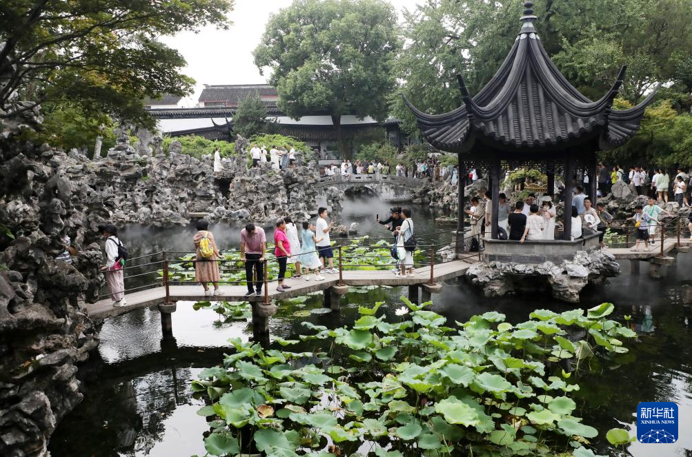 8月11日,游客在江苏苏州狮子林游玩。