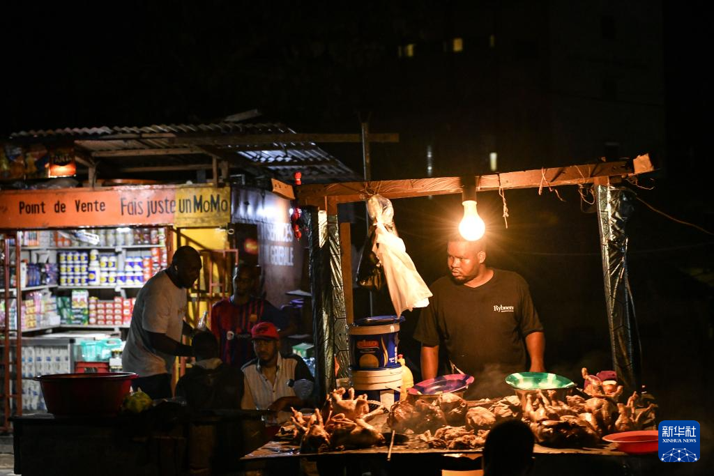 这是4月26日在几内亚首都科纳克里拍摄的夜市商铺。