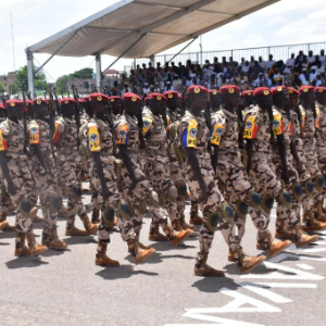 8月11日,士兵在乍得首都恩贾梅纳举行的庆祝独立65周年活动上列队行进。