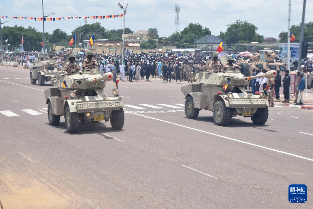 8月11日,在乍得首都恩贾梅纳举行的庆祝独立65周年活动上,装甲车辆列队行进。