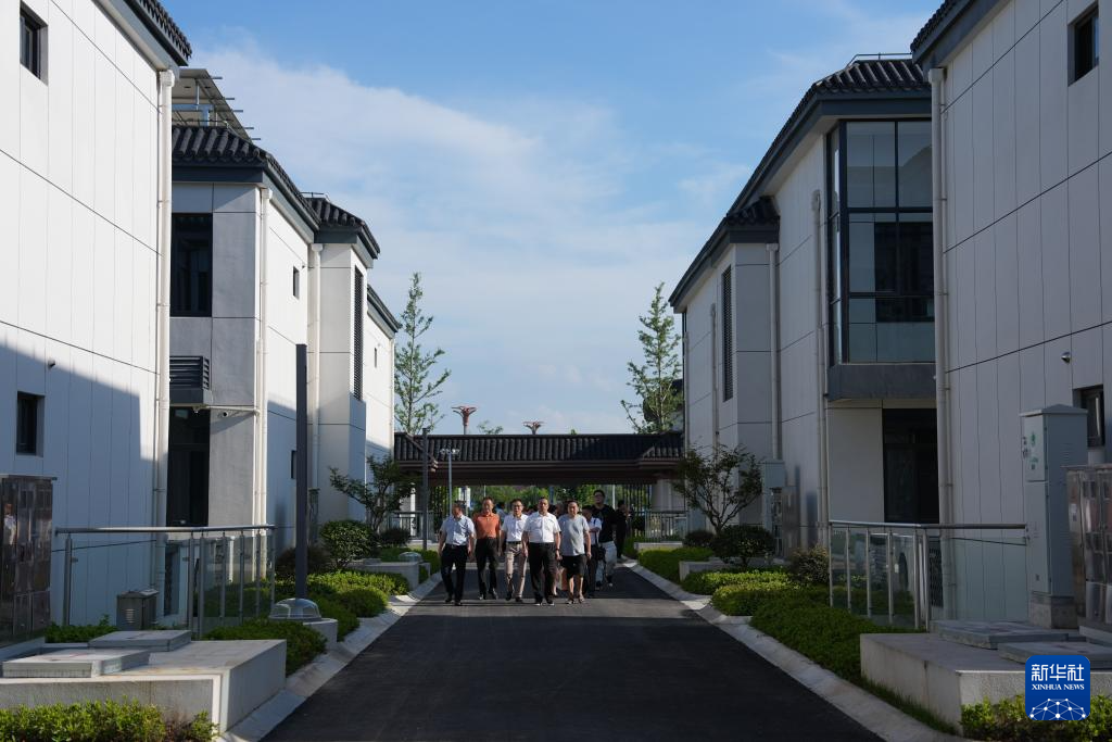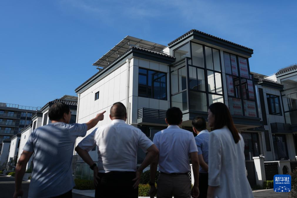 8月12日,宁波奉化萧王庙街道滕头村村民代表在参观未来社区屋顶分布式光伏发电项目。