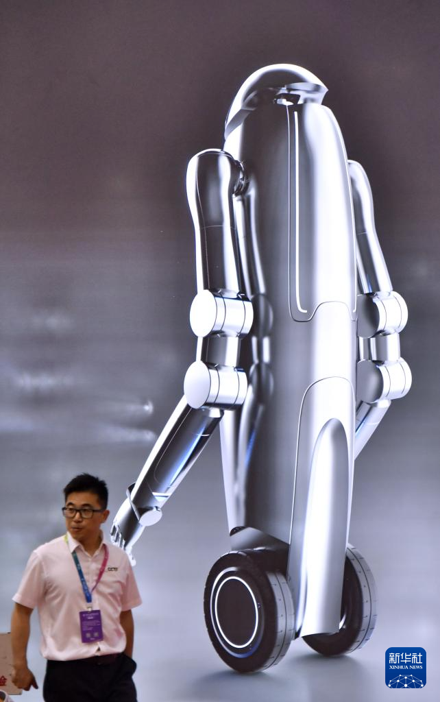 世界机器人大会上展出的一款家务助理机器人(8月8日摄)。