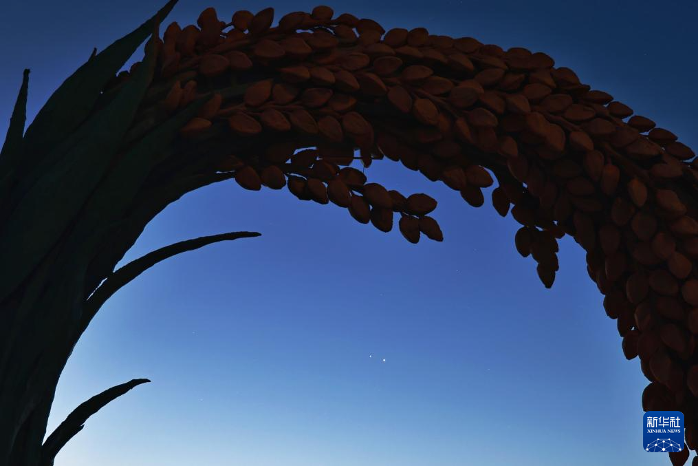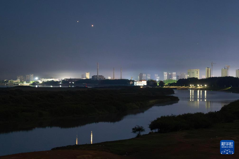 8月12日凌晨在黑龙江省齐齐哈尔市劳动湖景区拍摄的金星、木星极近景象。