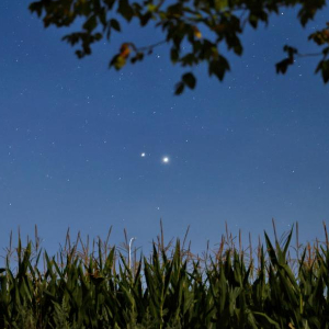 8月12日凌晨,在黑龙江省富锦市拍摄的金星、木星极近景象。