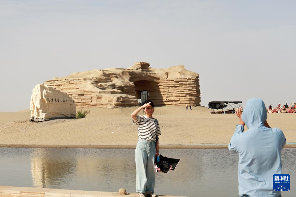8月12日,游客在“沙漠之门”景区打卡拍照。