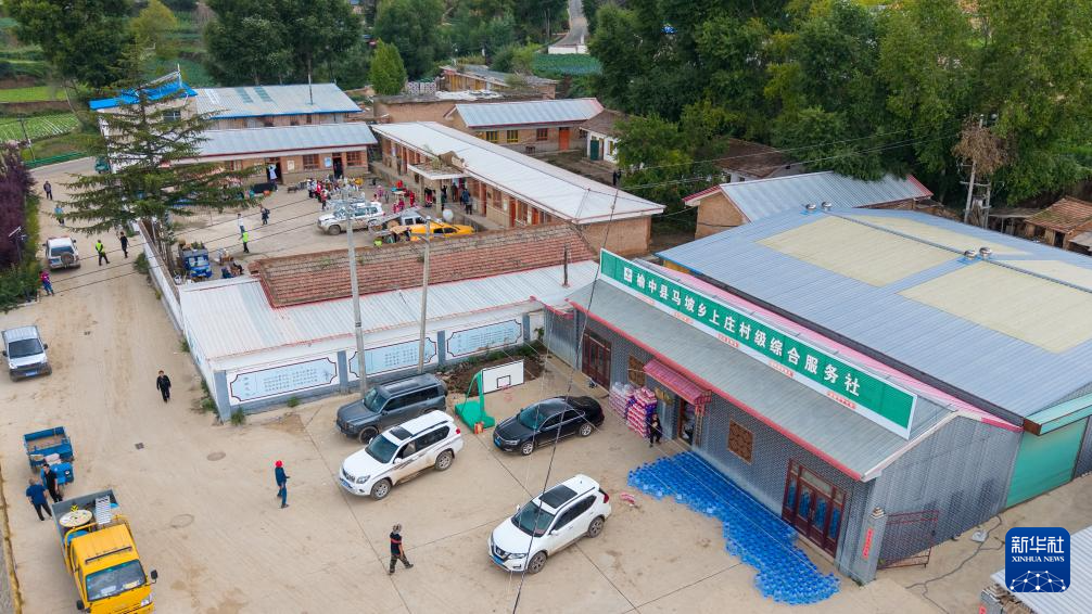 这是8月10日在榆中县马坡乡上庄村拍摄的临时安置点(无人机照片)。