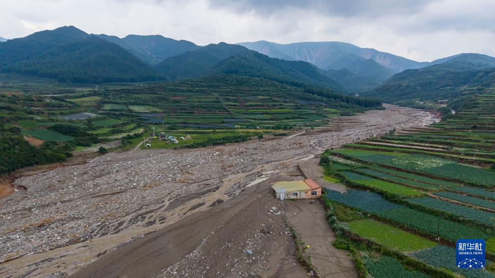 这是8月10日在榆中县马坡乡上庄村拍摄的山洪灾害现场(无人机照片)。
