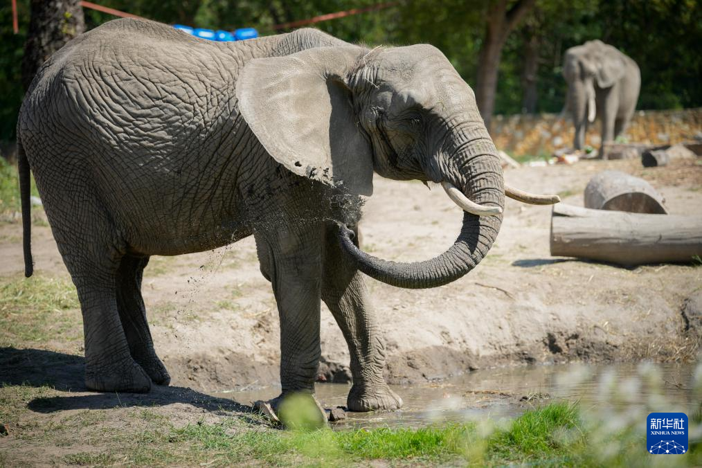 这是8月12日在波兰华沙动物园拍摄的大象。