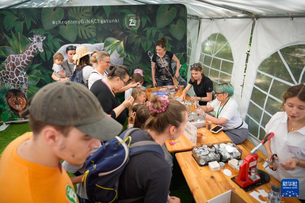 8月12日,在波兰华沙动物园,人们参加世界大象日活动时体验手工制作。