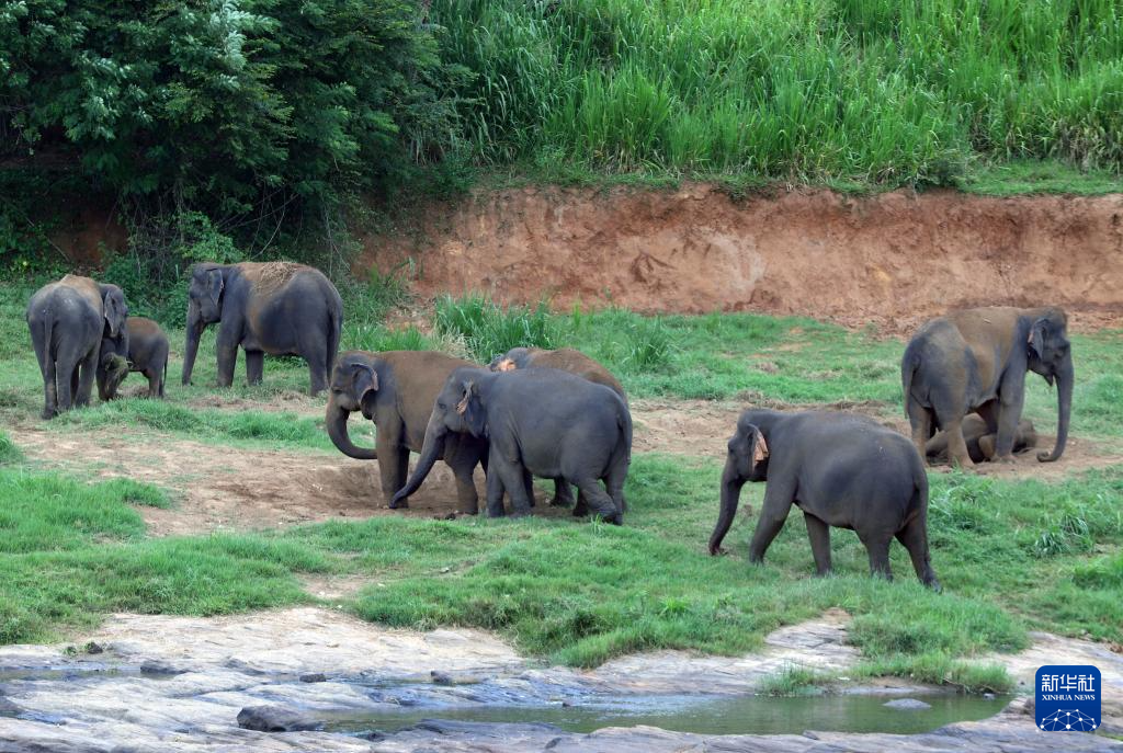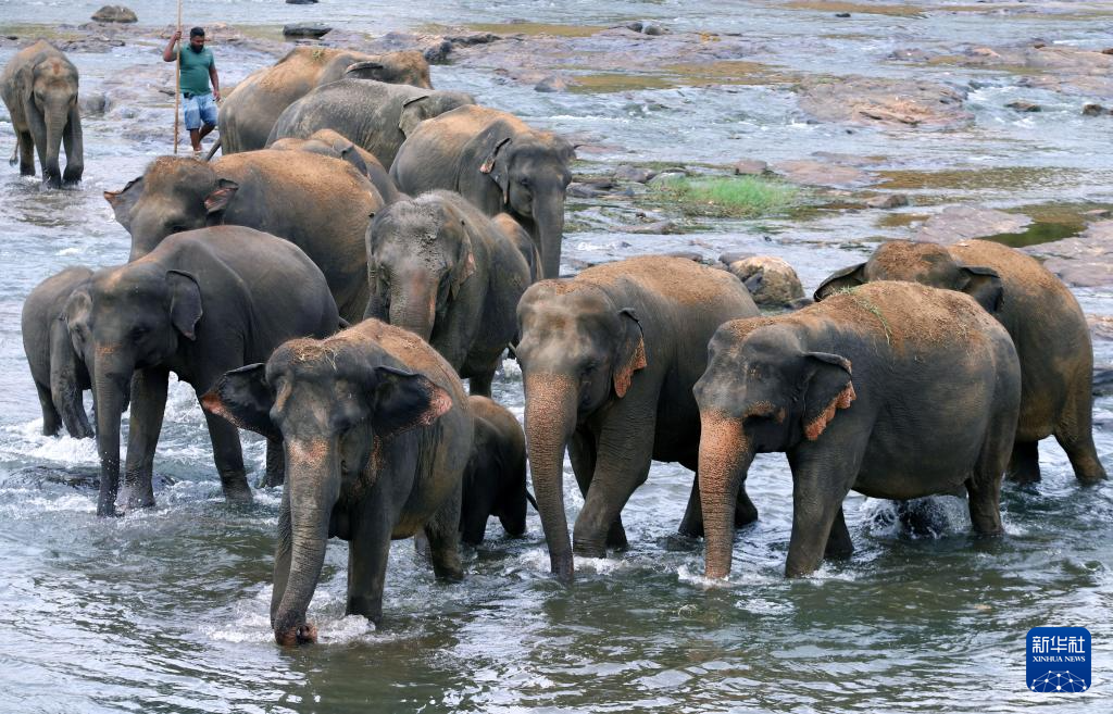 这是8月10日在斯里兰卡平纳维拉大象孤儿院拍摄的象群。