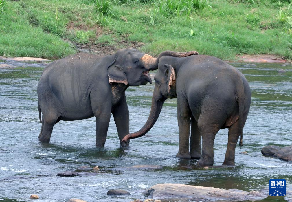 这是8月9日在斯里兰卡平纳维拉大象孤儿院拍摄的大象。