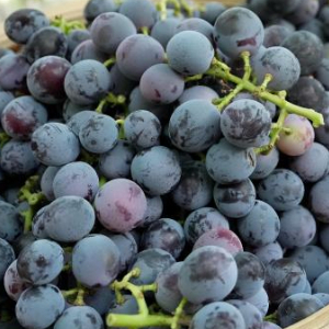 8月12日,河北省卢龙县蛤泊镇鲍子沟村一家葡萄种植合作社社员在展示刚采摘的葡萄。