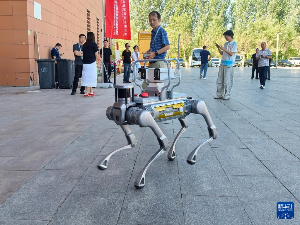 这是8月13日在展览会上拍摄的可用于油气生产场景的机器狗。