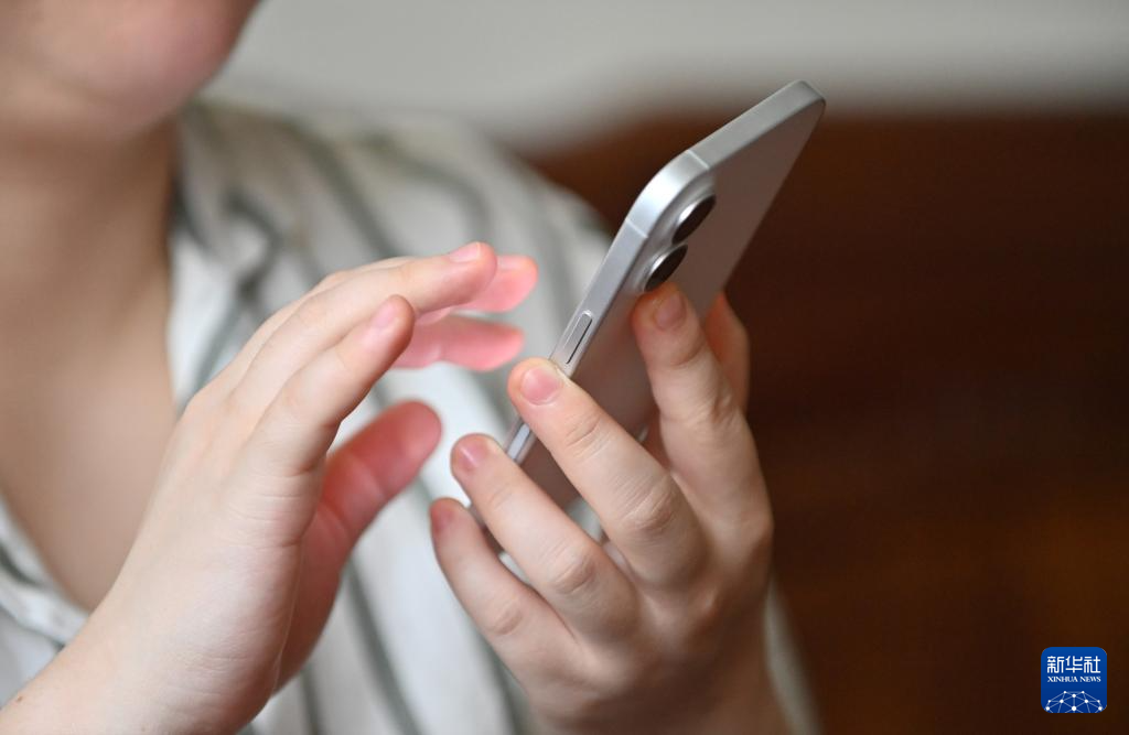 8月13日,李莹在广西南宁市的家中通过手机软件听文学作品。