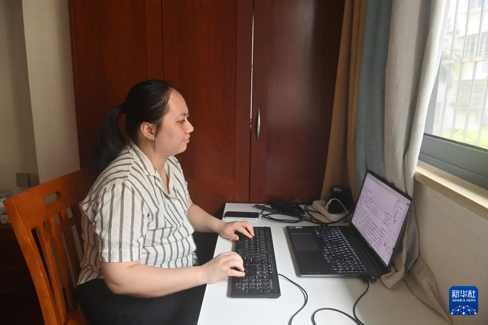8月13日,在广西南宁市的家中,李莹(右)在妈妈的帮助下校对文稿。