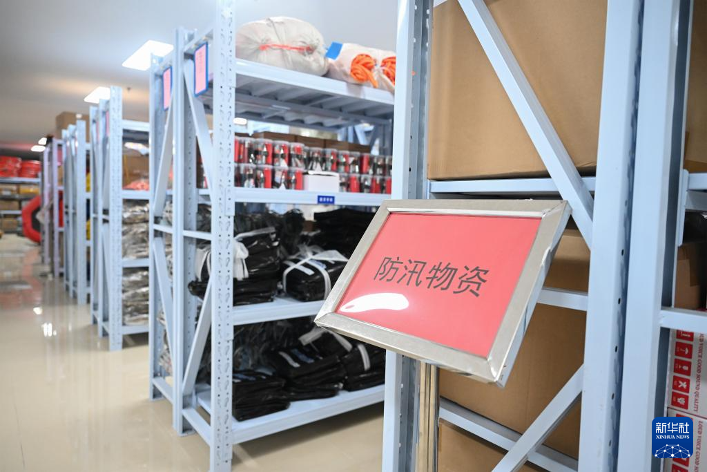 8月13日晚在福建漳州古雷港经济开发区应急救灾物资储备仓库内拍摄的防汛物资。