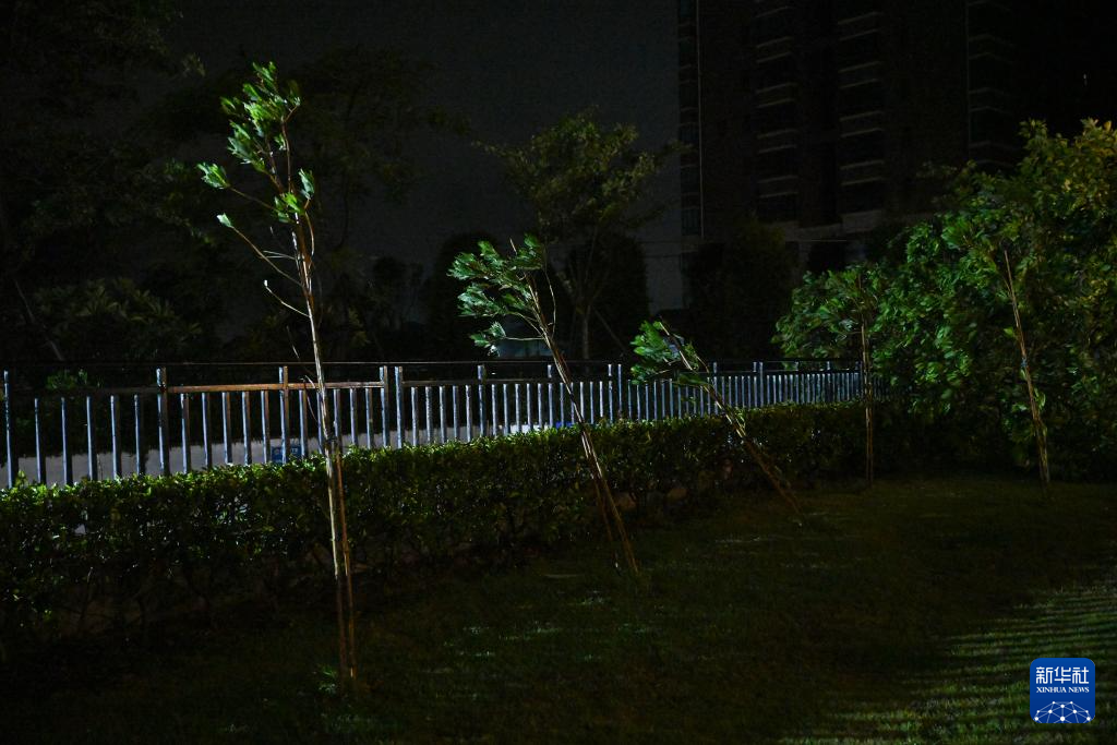 8月14日凌晨,在福建省漳浦县沿海区域,树木被大风吹得东倒西歪。