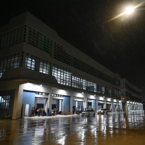 8月13日晚在福建漳州古雷港经济开发区拍摄的古雷建发集团厂房避灾点。