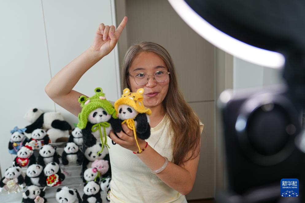 8月10日,在位于成都市武侯区的四川熊猫滚滚科技有限公司直播间,主播在某电商平台直播销售“大熊猫IP”包挂产品,据统计,今年1-7月,该公司包挂产品销售额达到1200万元。