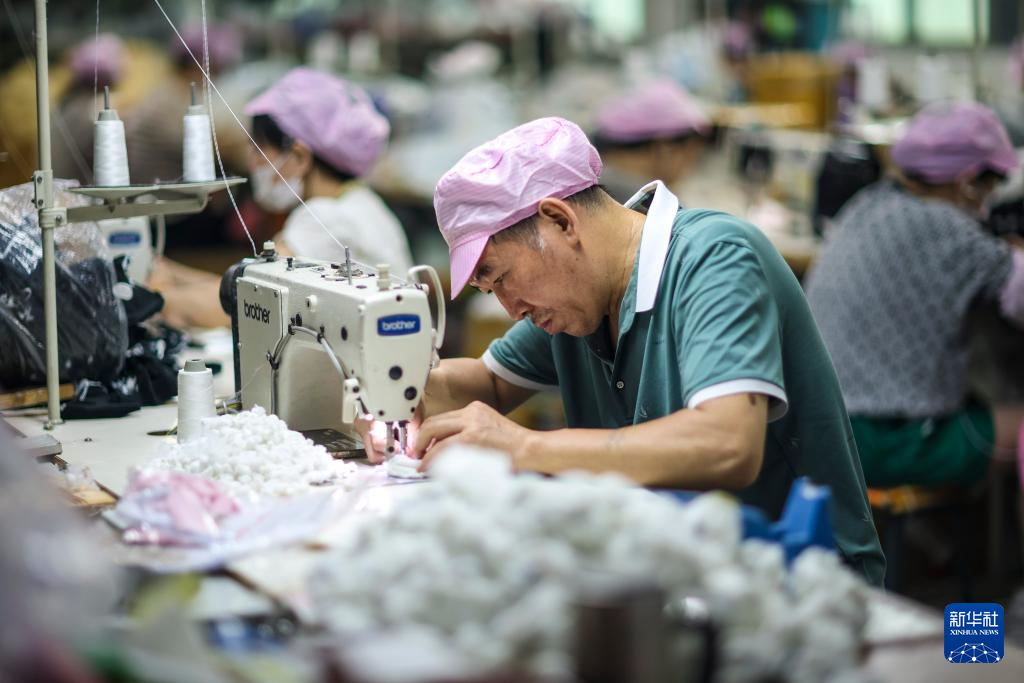 8月11日,在四川省达州市达川区景市镇红岩洞村诚兴外贸玩具加工厂,工人赶制出口欧美国家的包挂。