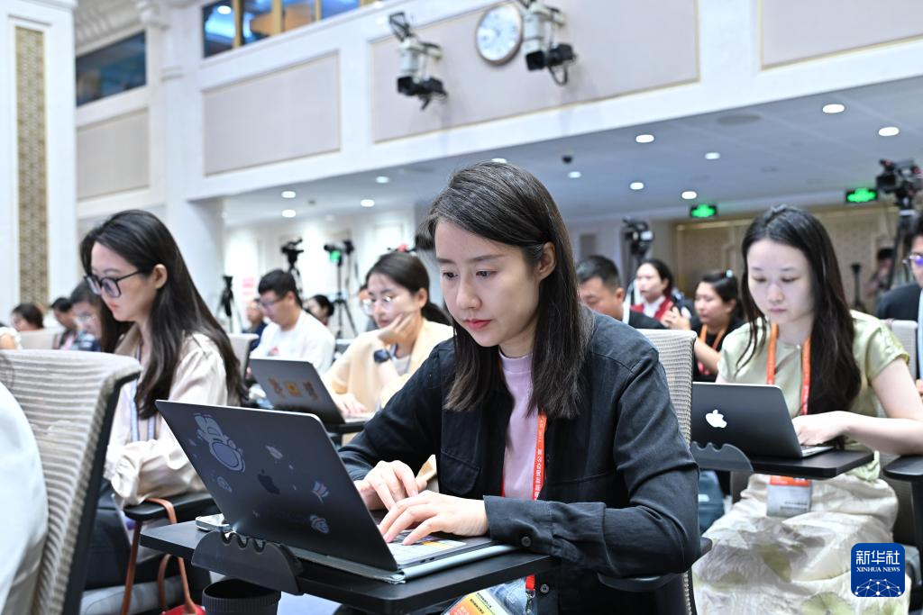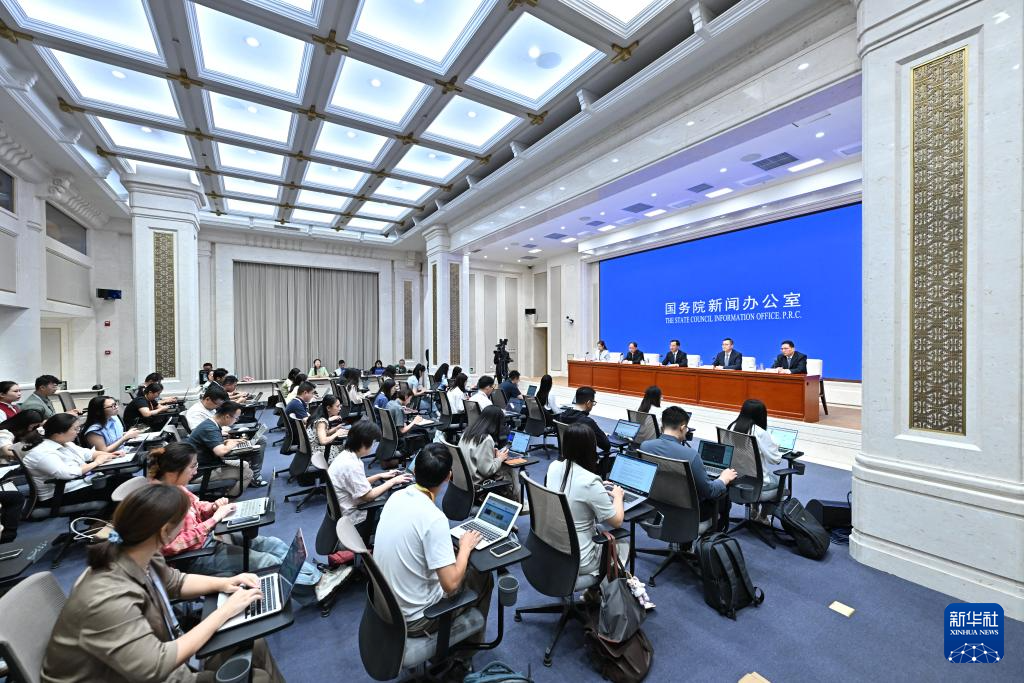 8月14日,国务院新闻办公室在北京举行“高质量完成‘十四五’规划”系列主题新闻发布会。国家发展改革委党组成员、国家数据局局长刘烈宏,国家数据局副局长沈竹林,国家数据局副局长陈荣辉,国家数据局副局长夏冰介绍“十四五”时期数字中国建设发展成就,并答记者问。这是记者在现场记录。